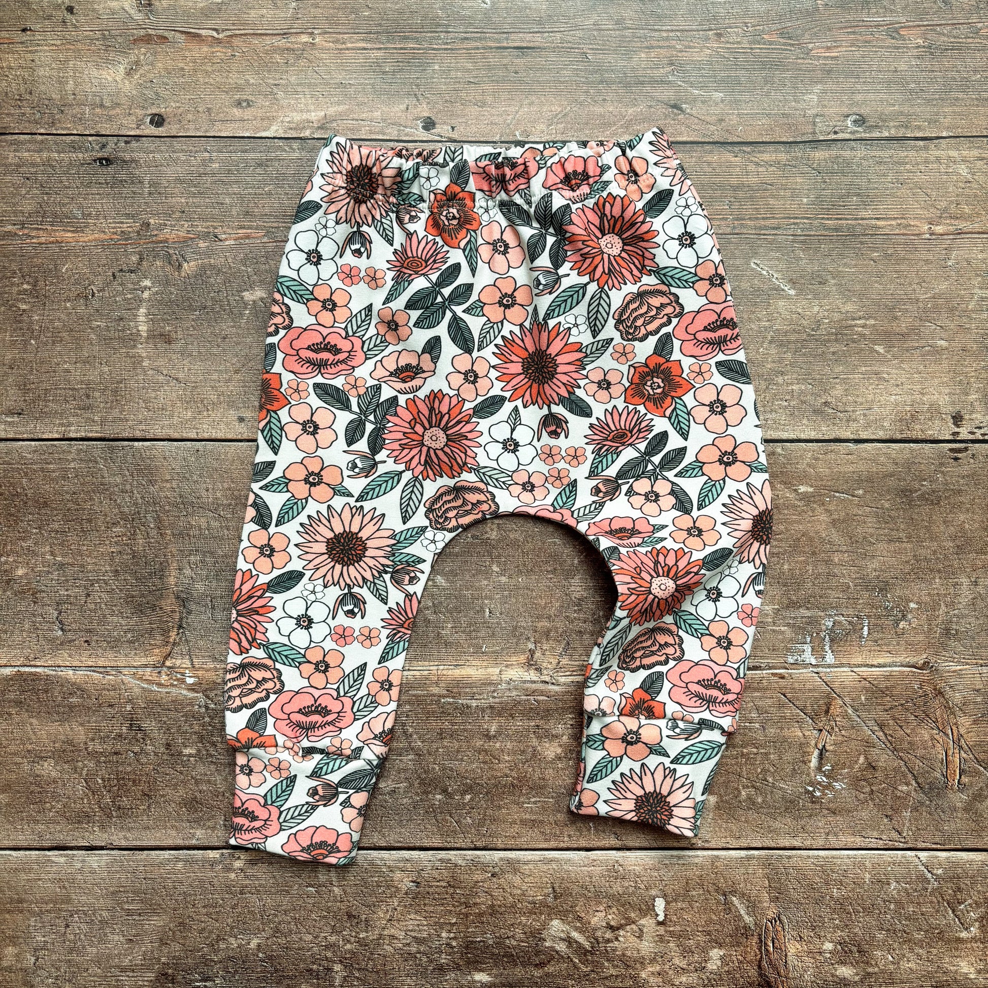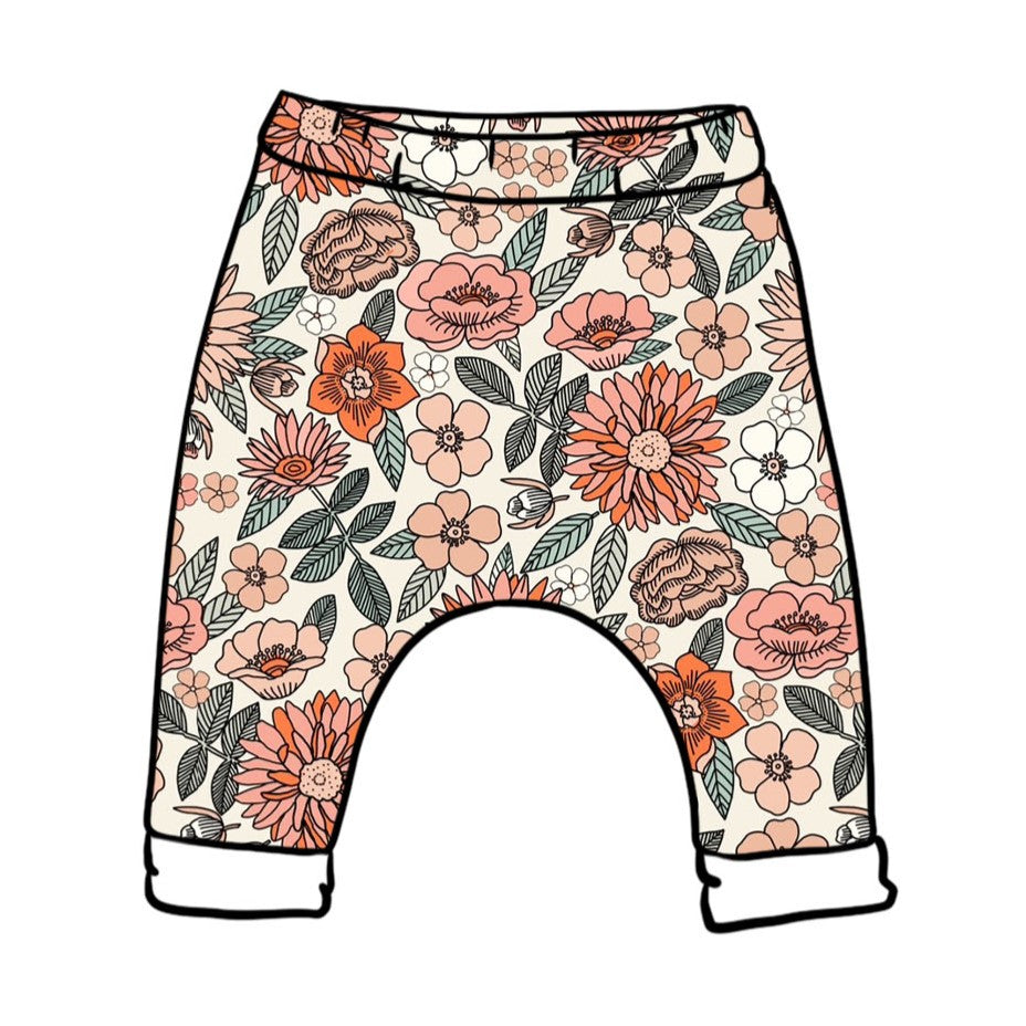 All harems feature a no-fold waistband and are cut for both cloth and disposable nappies, giving your little one the free to wriggle, crawl or run about. Sizing guides can be found here.