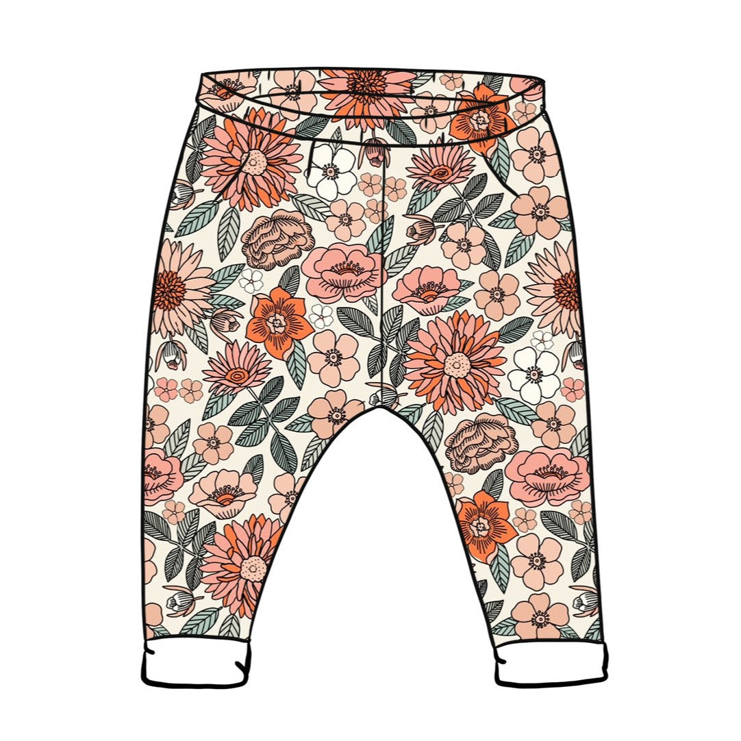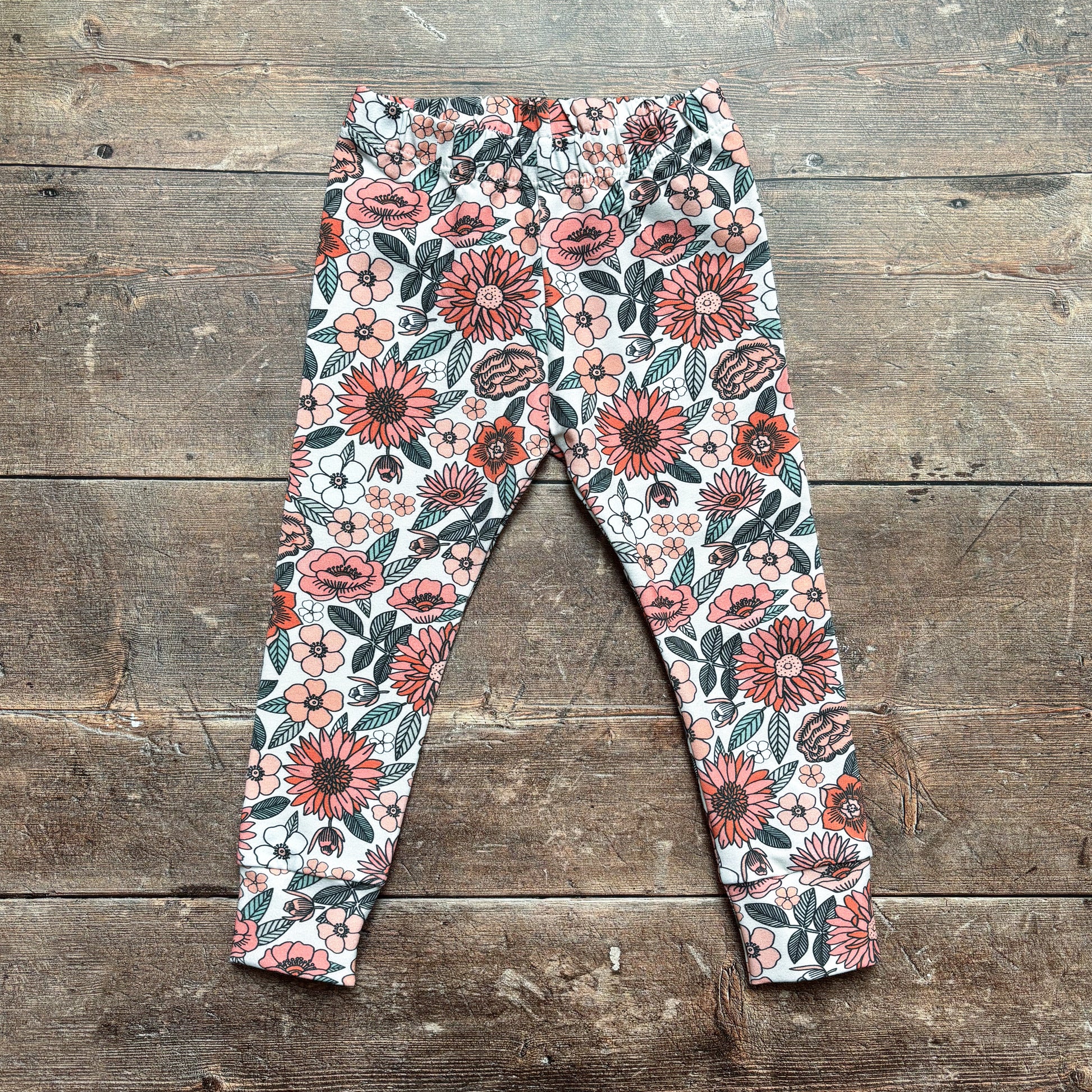 All leggings feature a no-fold waistband. Leggings are a slimmer fit than harems, so are not as roomy for those using cloth nappies - please bear this in mind when ordering. Sizing guides can be found here.