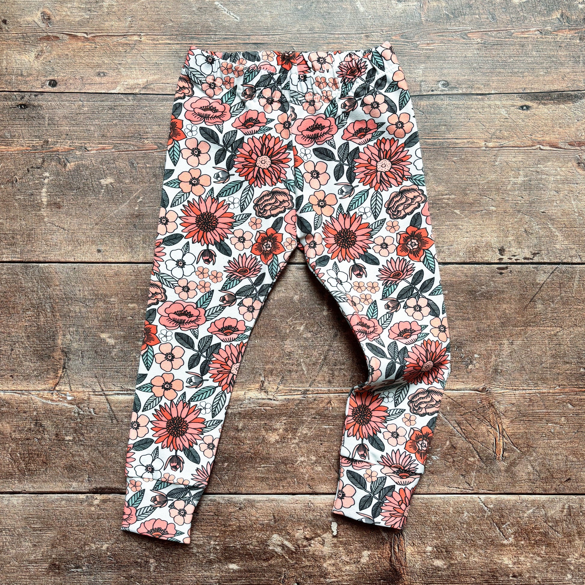 All leggings feature a no-fold waistband. Leggings are a slimmer fit than harems, so are not as roomy for those using cloth nappies - please bear this in mind when ordering. Sizing guides can be found here.