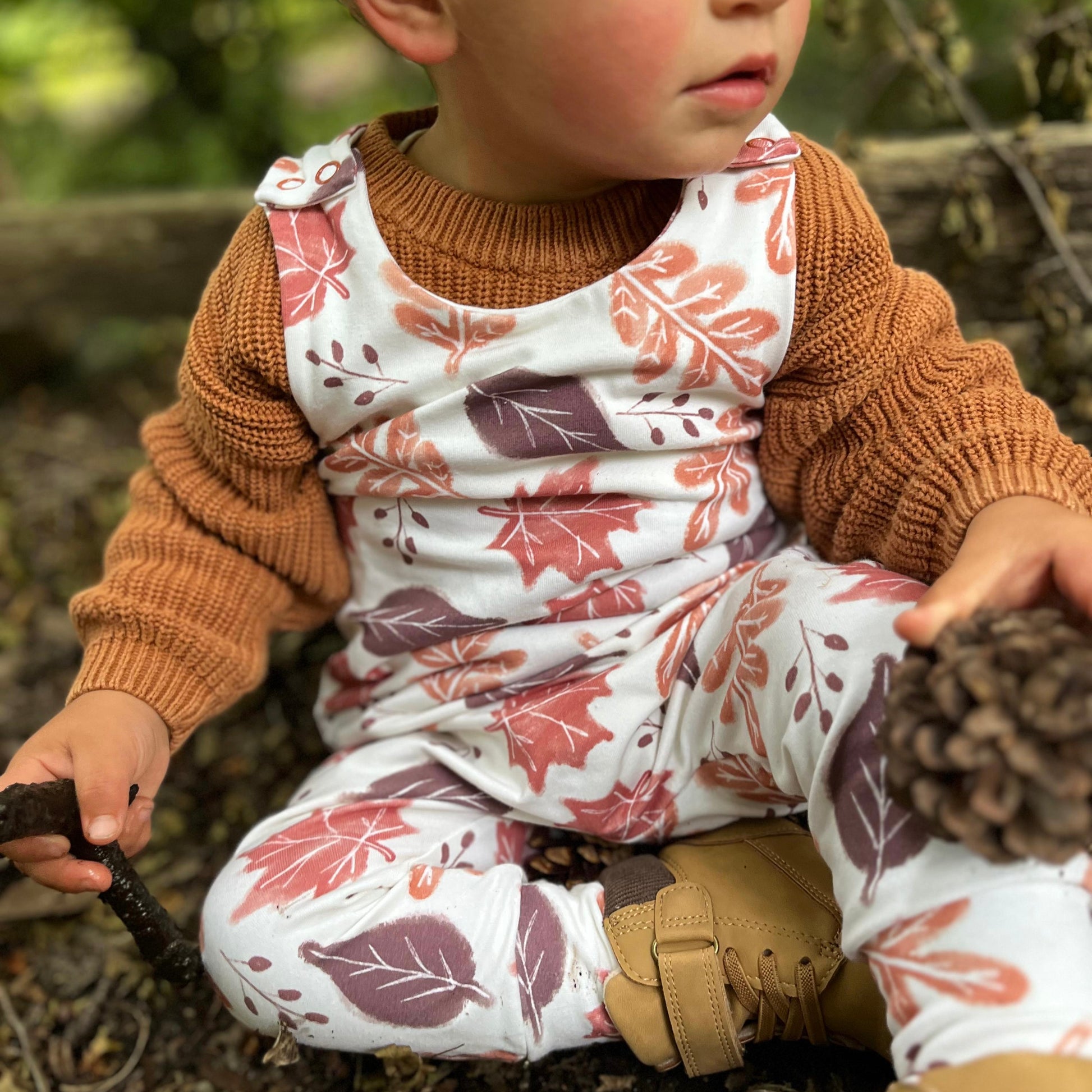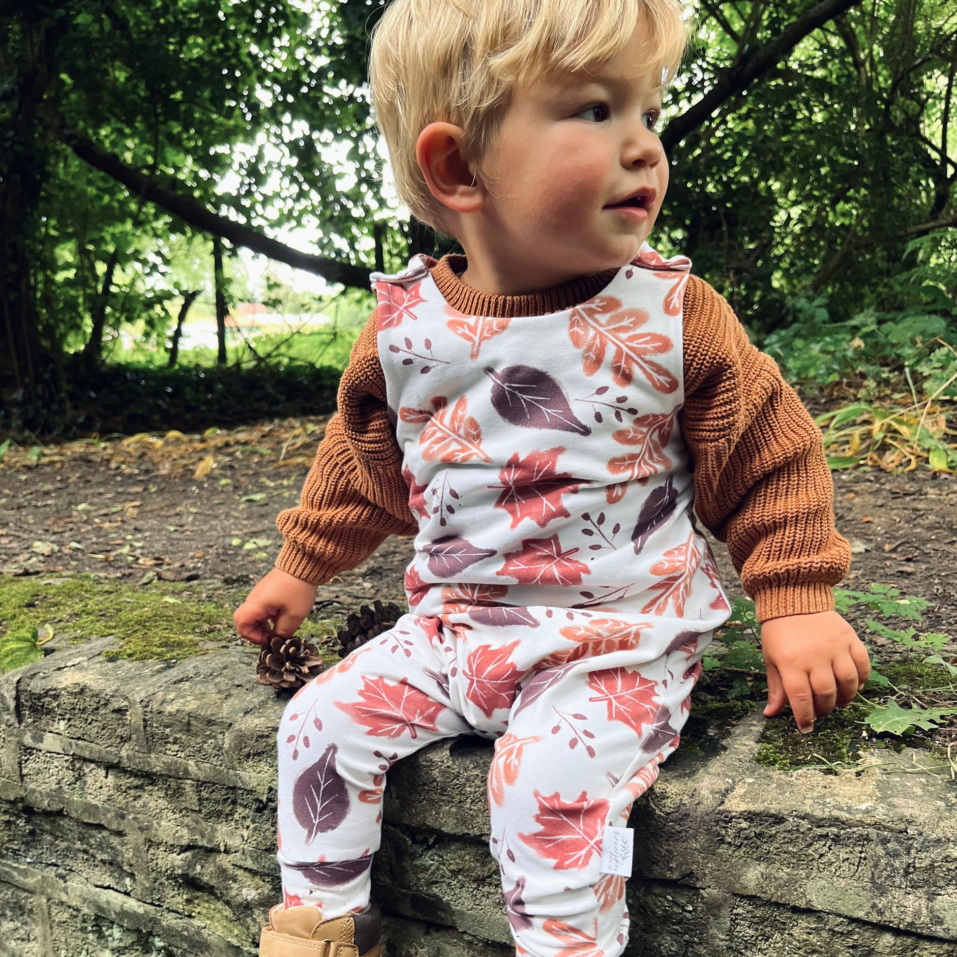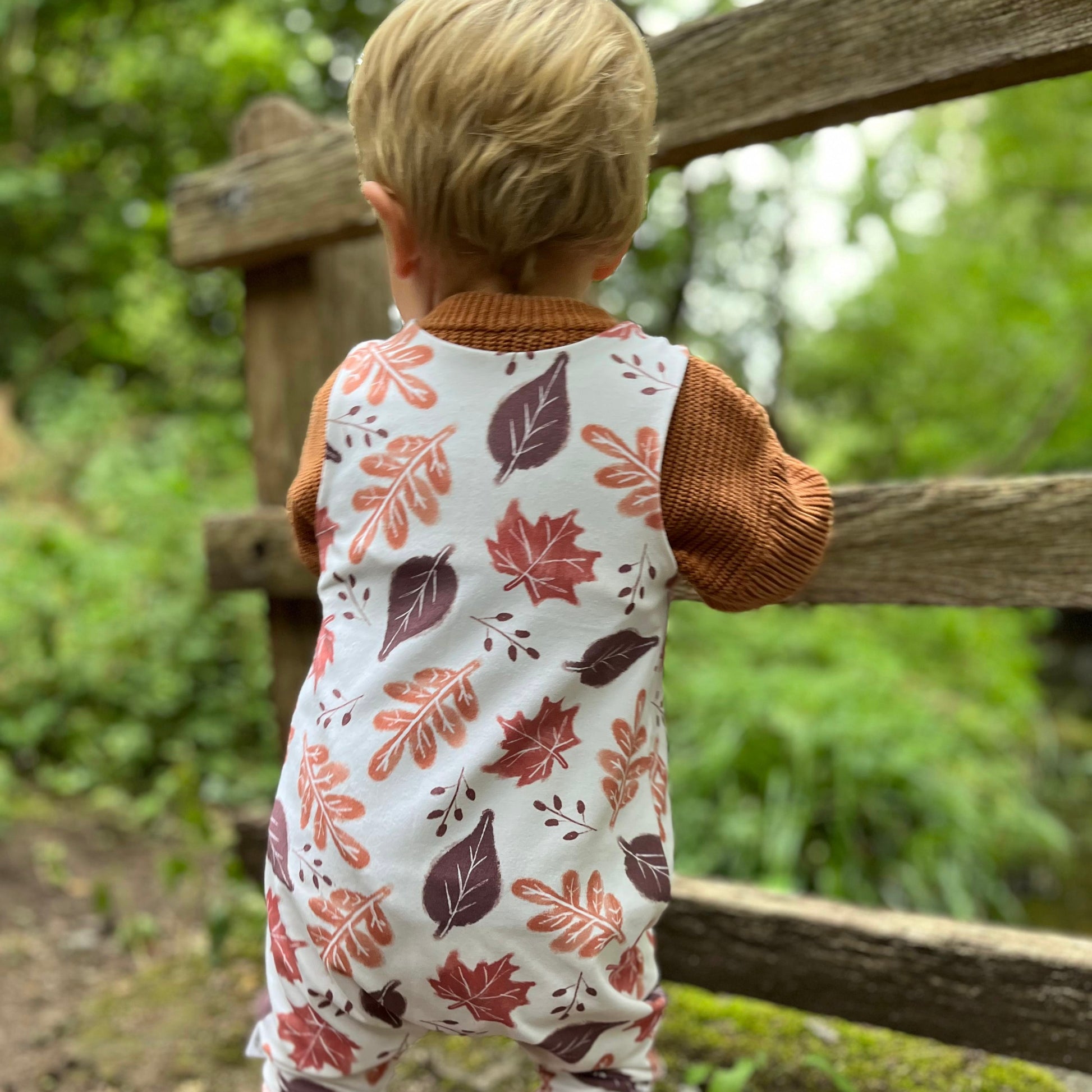 Let your little one play, explore, and relax in style with our Rustic Autumn Leaves Baby and Children's Full Length Romper. Featuring a gently falling leaf print in warm, earthy tones of burnt orange, rust, and chocolate brown on a soft off-white background, it’s ideal for outdoor adventures, playful days out, or cosy moments at home.