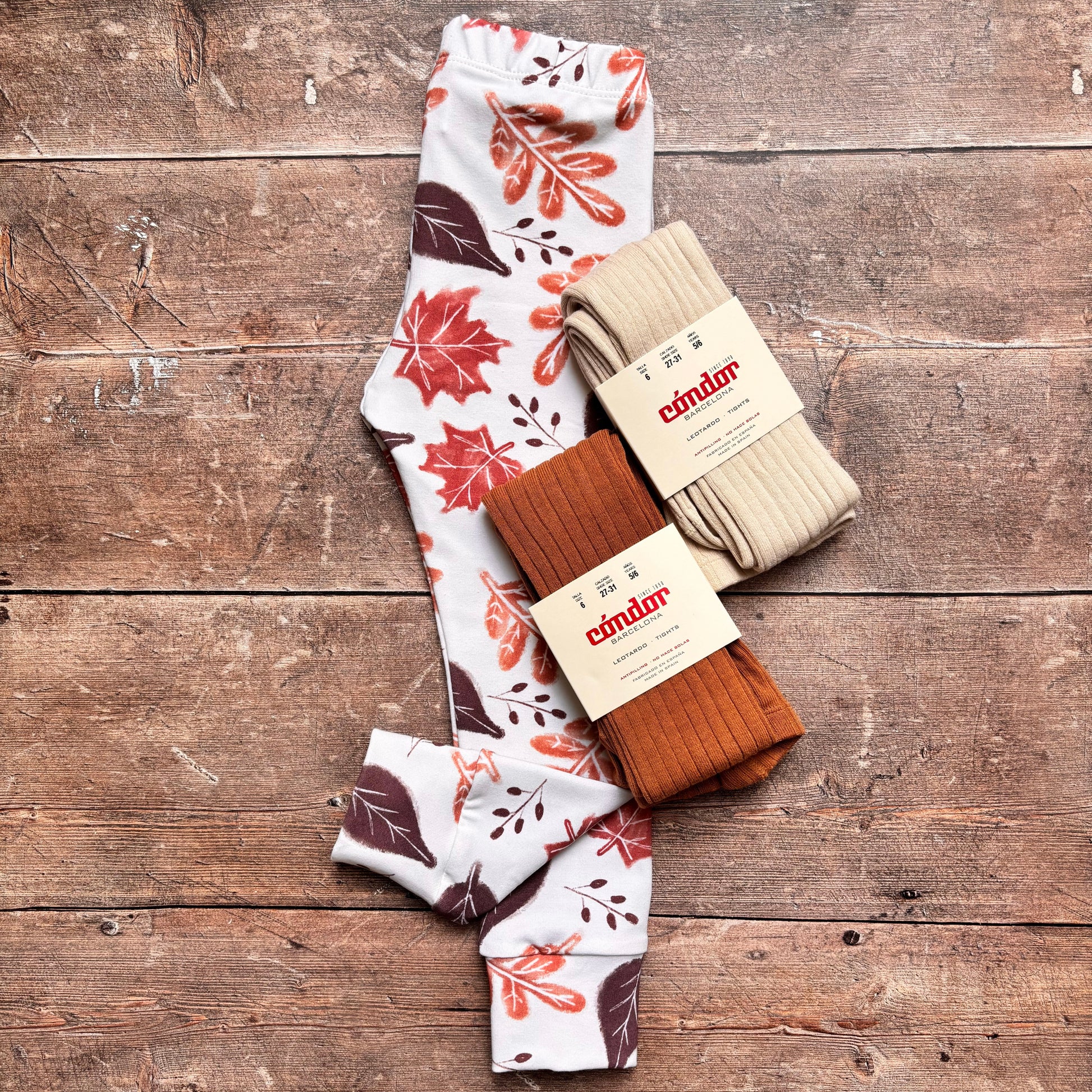 Made from breathable organic cotton, this charming dress features a delicate print of falling leaves in rich autumnal shades of burnt orange, rust, and chocolate brown on a soft off-white background. With long sleeves and a relaxed, comfortable fit, it’s an easy, go-to outfit that blends seasonal style with all-day comfort.