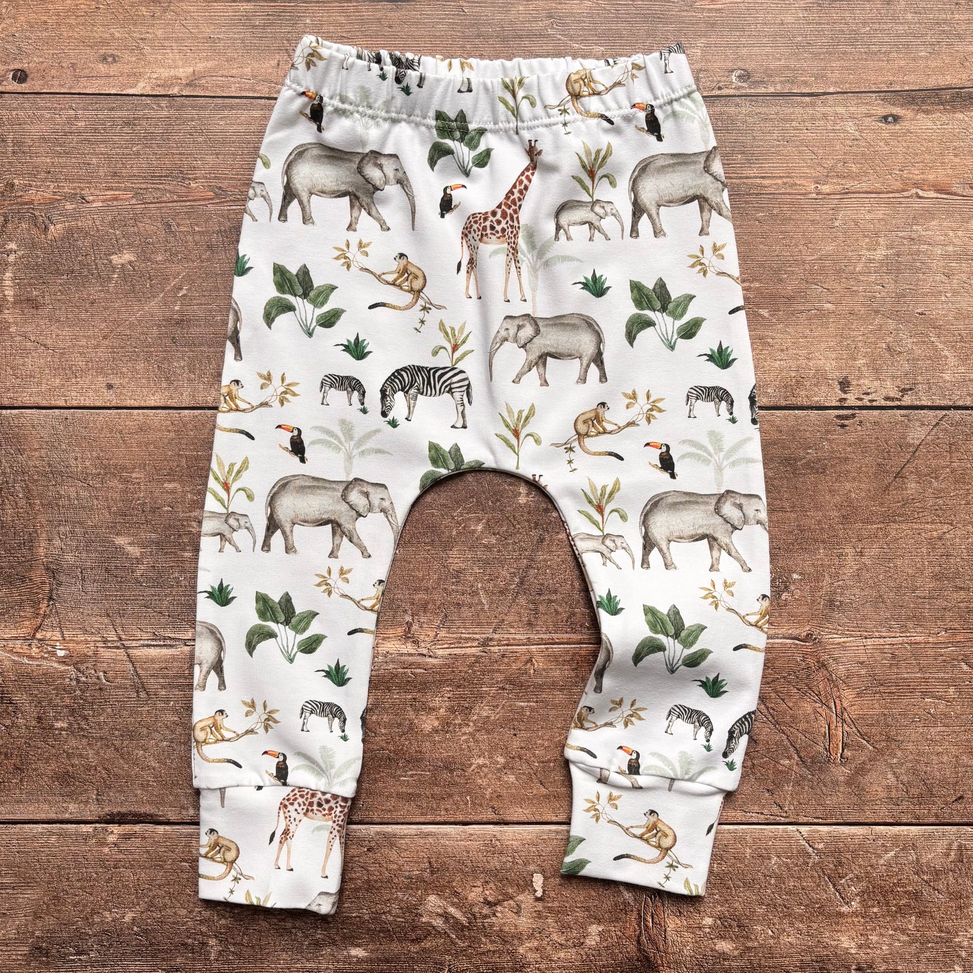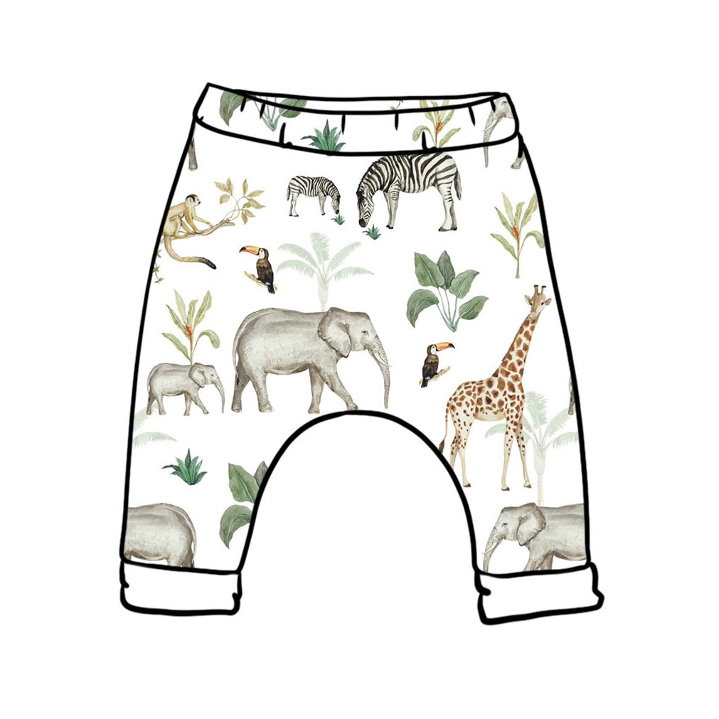 All harems feature a no-fold waistband and are cut for both cloth and disposable nappies, giving your little one the free to wriggle, crawl or run about. Sizing guides can be found here.