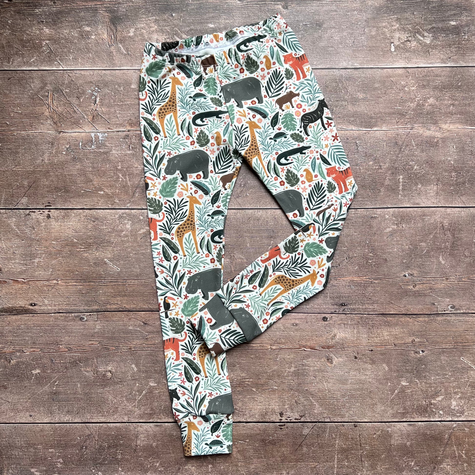 All leggings feature a no-fold waistband. Leggings are a slimmer fit than harems, so are not as roomy for those using cloth nappies - please bear this in mind when ordering. Sizing guides can be found here.