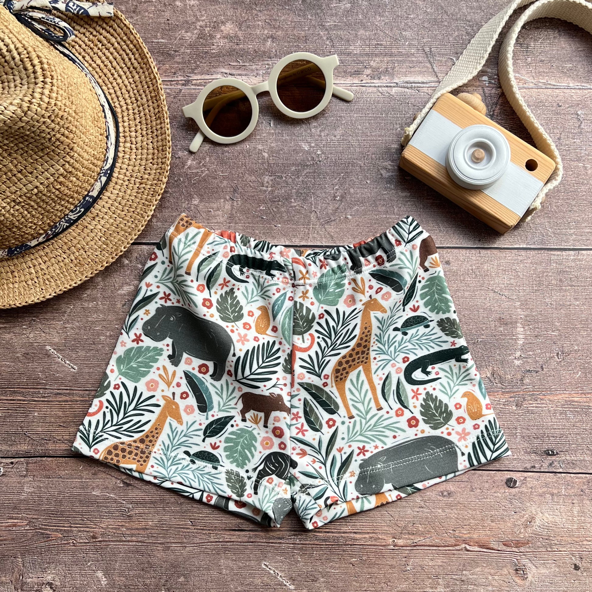 All shorts feature a no-fold waistband and are cut for both cloth and disposable nappies, giving your little one the free to wriggle, crawl or run about. Sizing guides can be found here.
