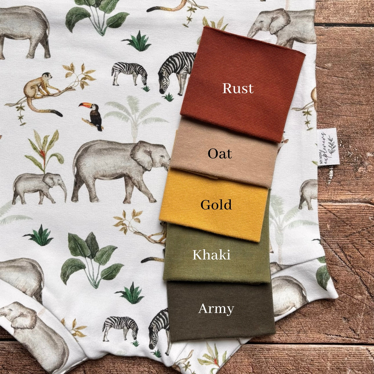Handmade from soft cotton jersey on one side and organic cotton stretchy rib knit on the other (choose the solid colour below).