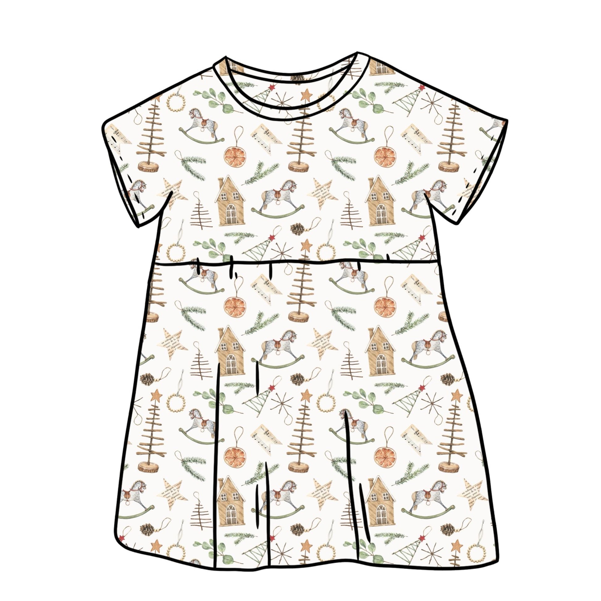 Scandi Christmas Child & Baby Short Sleeve Dress