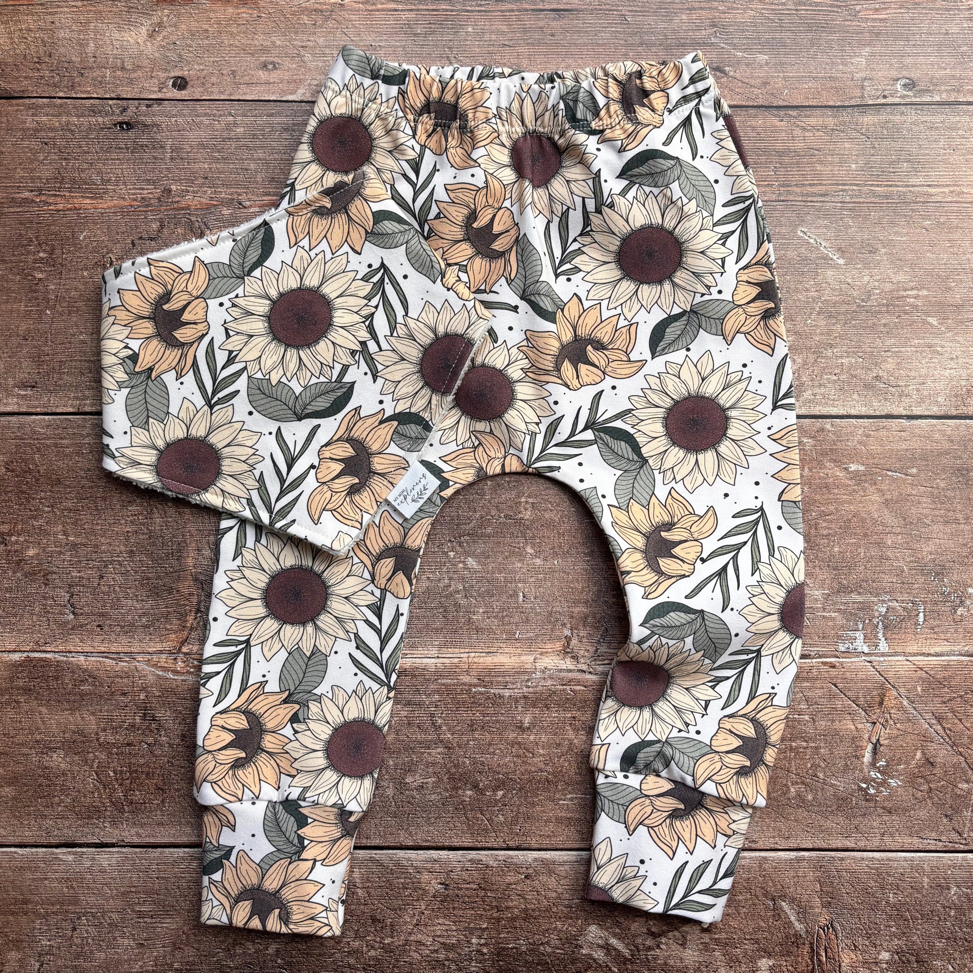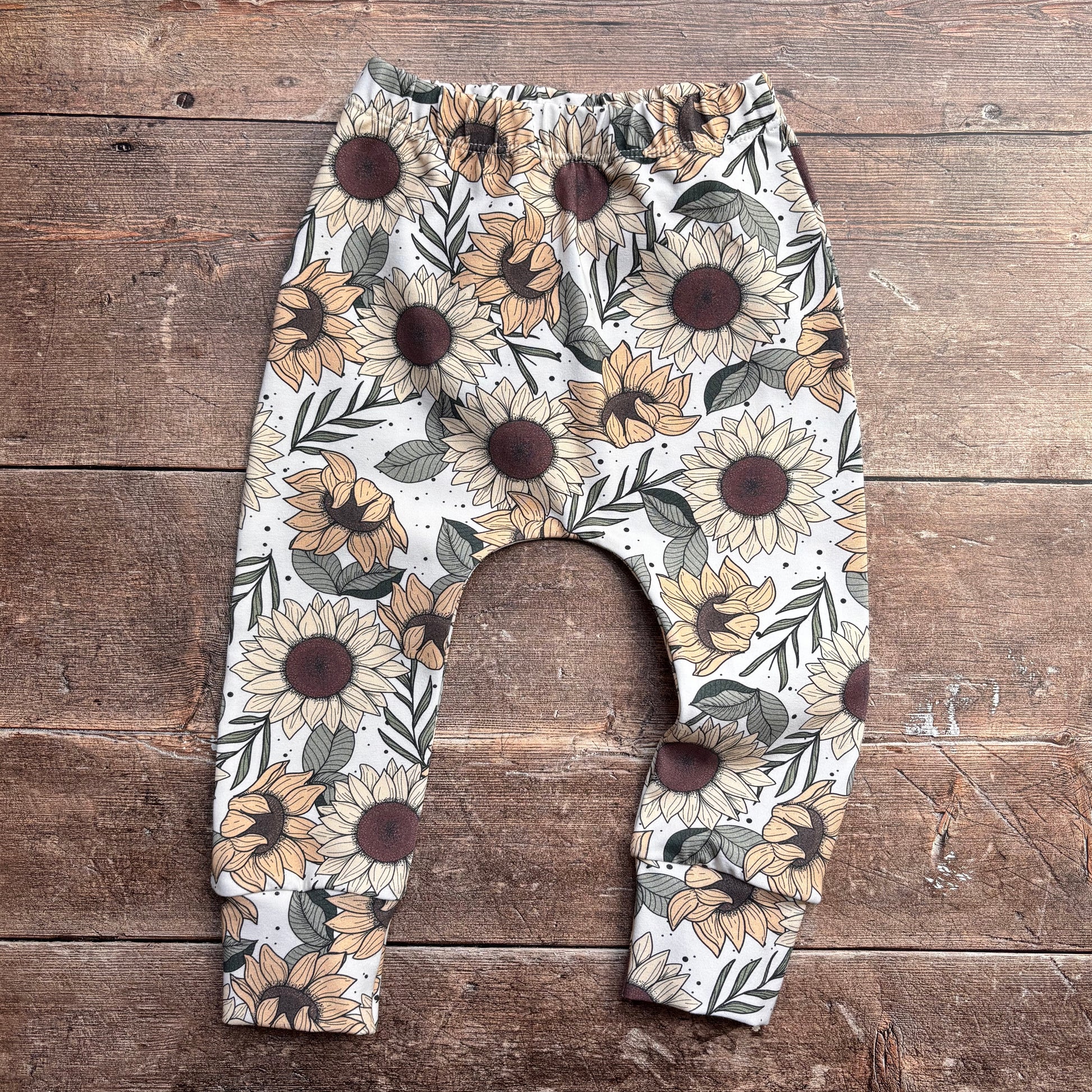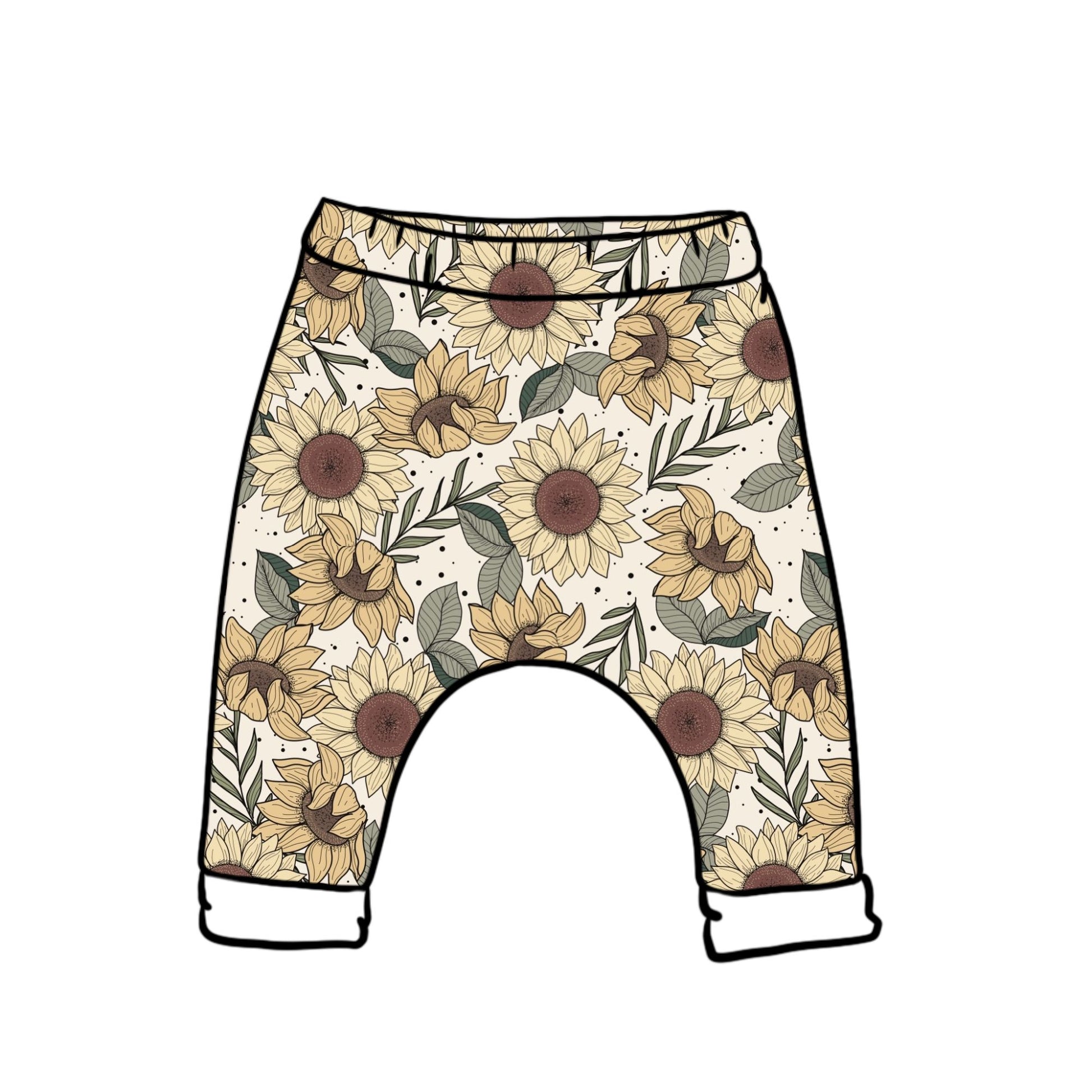 Let little ones move in comfort with our Sunflower Meadow Baby & Children's Harem Trousers. Made from soft, breathable organic cotton, these relaxed-fit trousers feature a charming hand-drawn design of bright sunflowers, warm terracotta centres, and soft sage green leaves in gentle, nature-inspired tones. Perfect for everyday adventures, outdoor play, and relaxed days at home, they bring a cheerful, floral touch to your little one’s wardrobe.