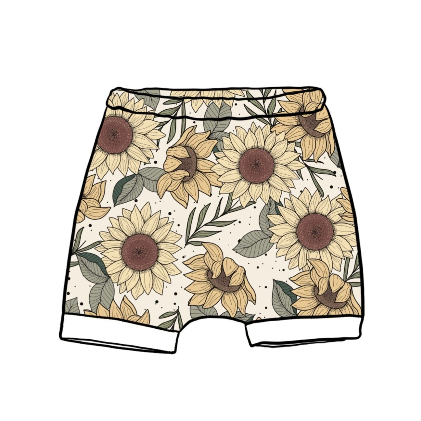 Add a touch of nature-inspired charm to your little one’s wardrobe with our Sunflower Meadow print Baby and Children's Rolled Shorts. Featuring a design which showcases hand-illustrated sunflowers paired with warm, earthy hues and delicate sage leaves for a timeless, organic look.