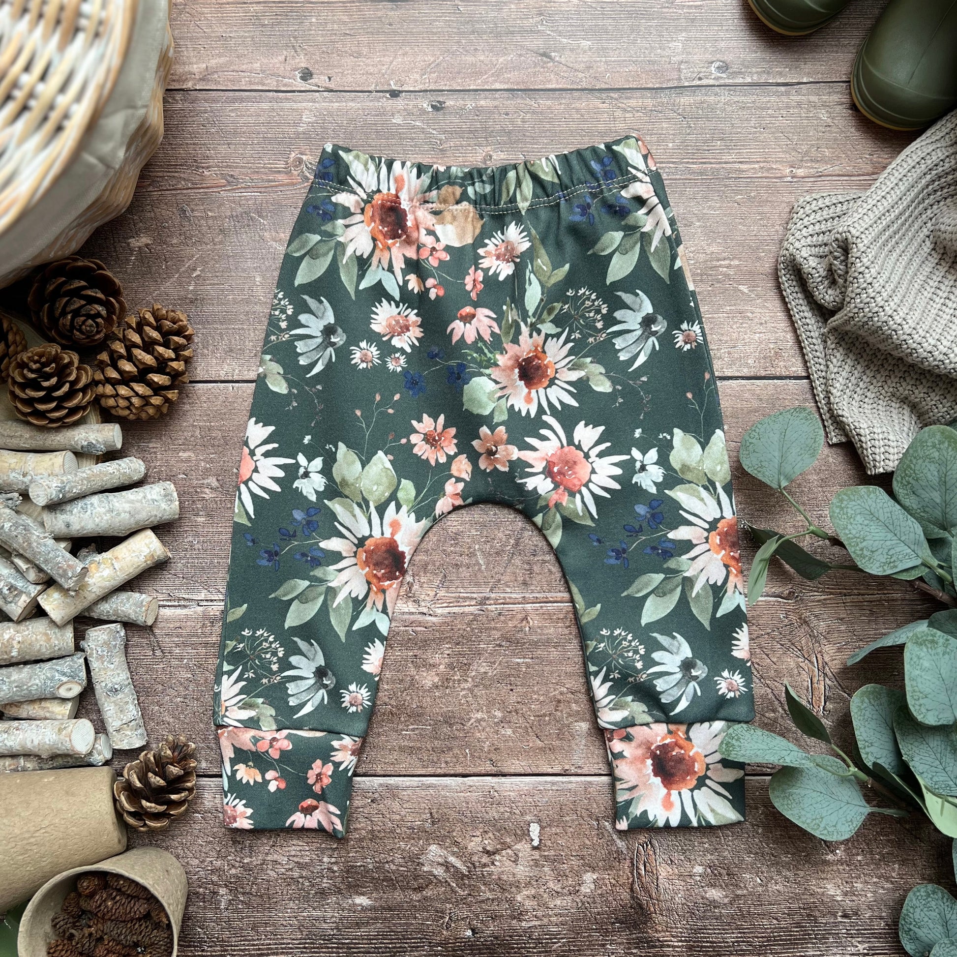 All harems feature a no-fold waistband and are cut for both cloth and disposable nappies, giving your little one the free to wriggle, crawl or run about. Sizing guides can be found here.