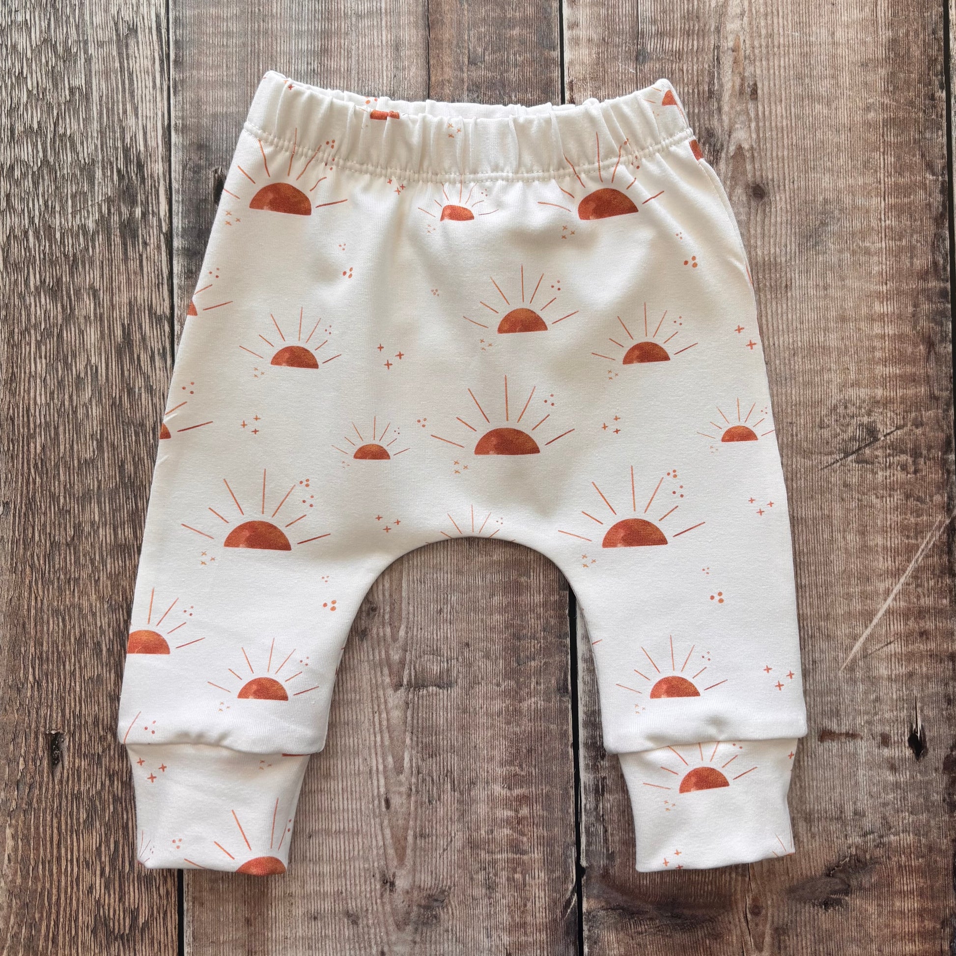 All harems feature a no-fold waistband and are cut for both cloth and disposable nappies, giving your little one the free to wriggle, crawl or run about.
