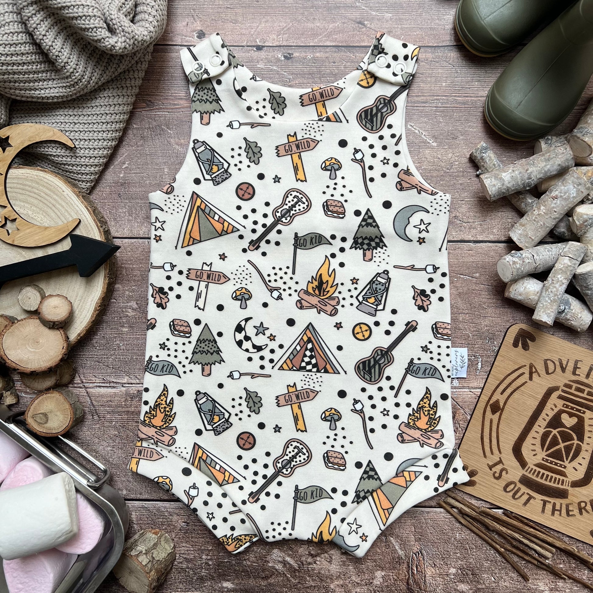 Beautifully handmade from organic cotton jersey knit. All rompers feature metal fasteners at each shoulder. Rompers are cut for both cloth and disposable nappies, giving your little one the freedom to wriggle, crawl or run about.