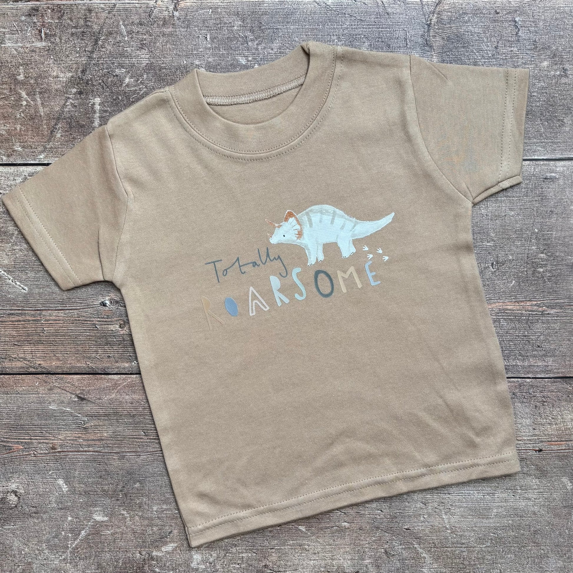 Totally roarsome short sleeve T-shirt 6-12m (Taupe)