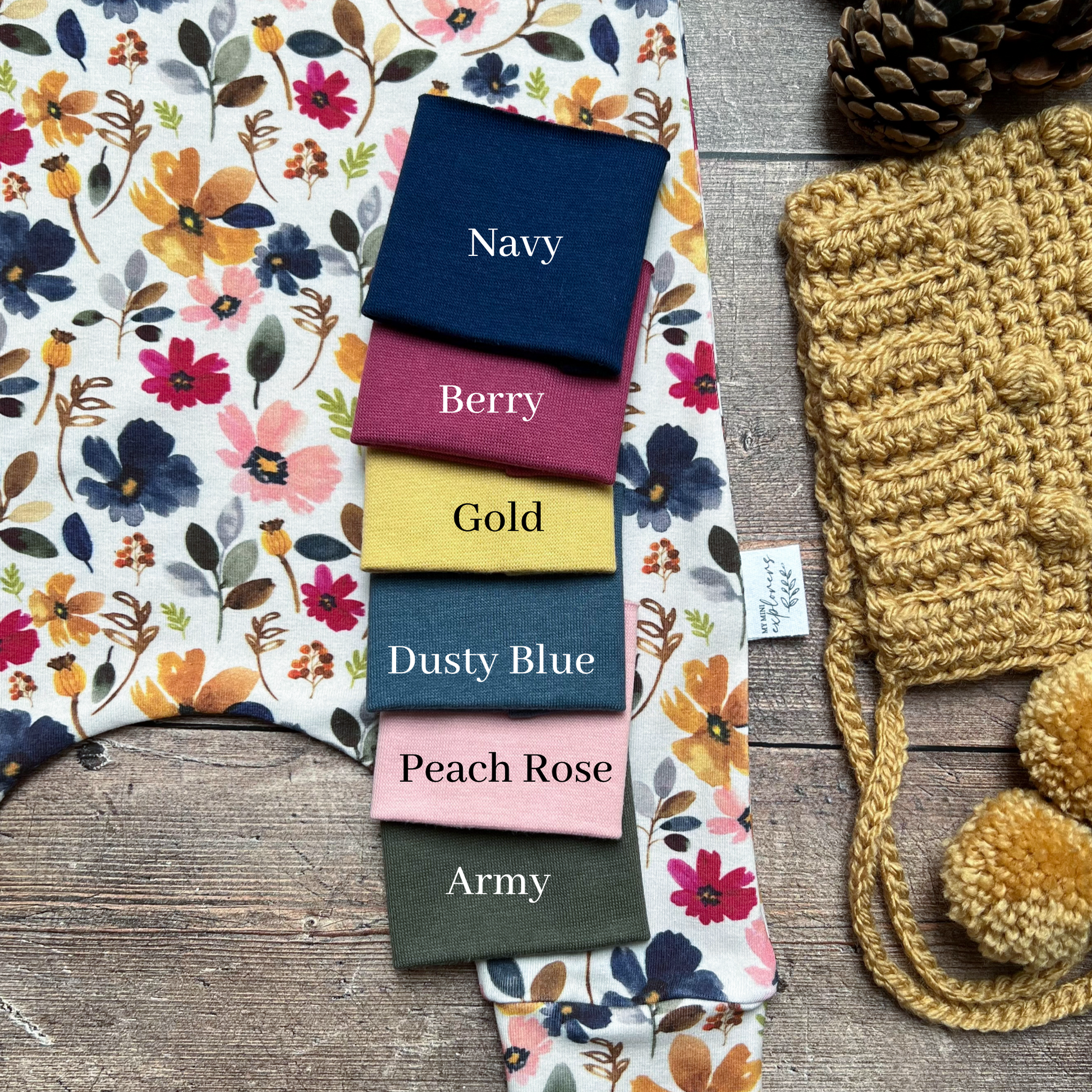Handmade leggings, rompers, dresses and accessories - All items that I hand make are made from 95% organic cotton / 5% elastane, giving your mini explorers lots of room to explore and stretch. The only exceptions to this are our blankets which are 100% polyester making them super soft and cosy.