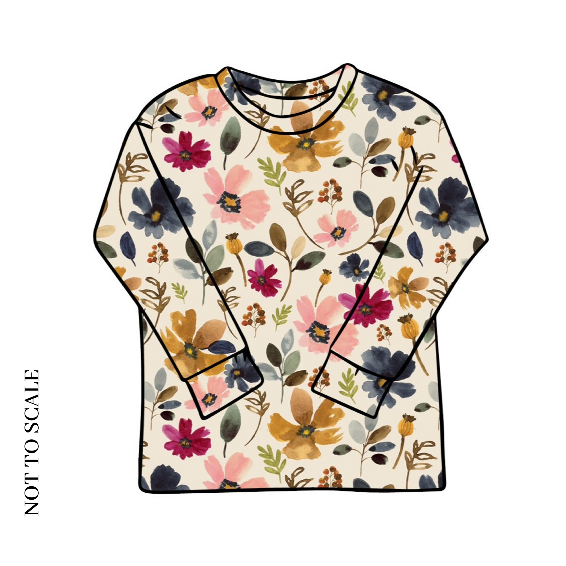 A great little top with a customisable neckband and cuffs to make it your own. Makes a great lounge set with the matching leggings or harems.