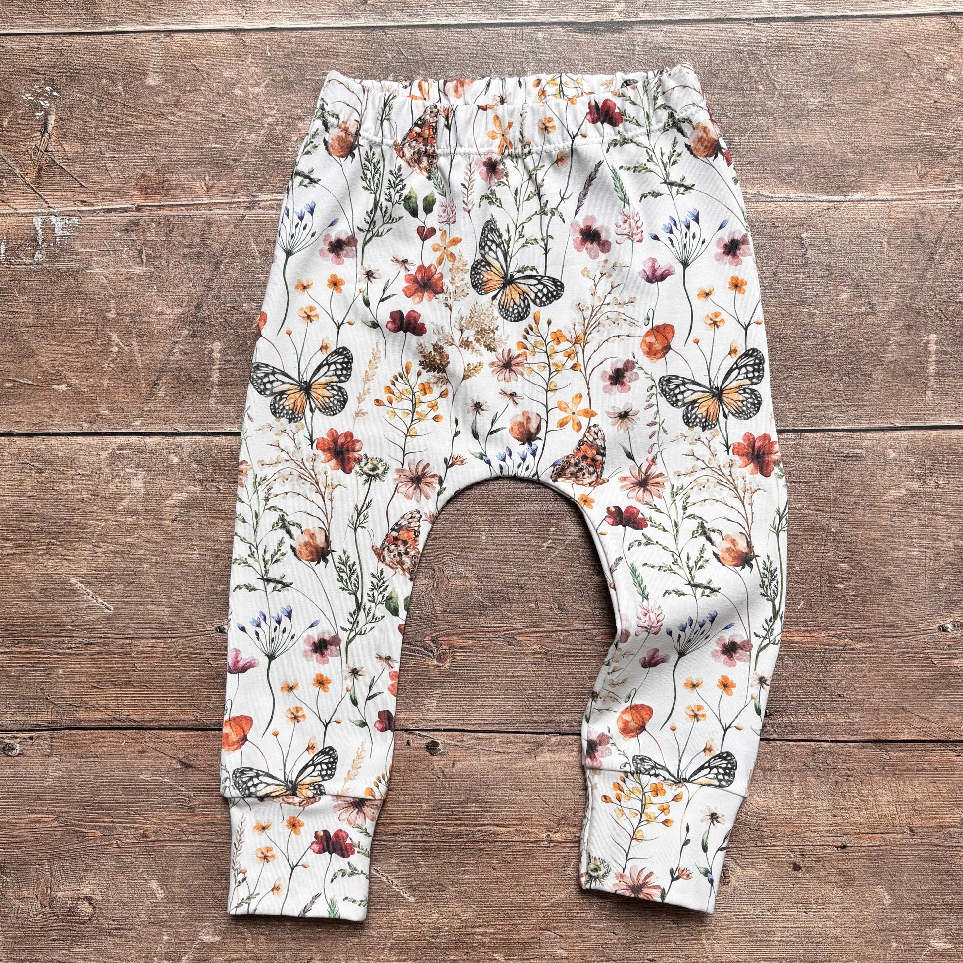 All harems feature a no-fold waistband and are cut for both cloth and disposable nappies, giving your little one the free to wriggle, crawl or run about. Sizing guides can be found here.