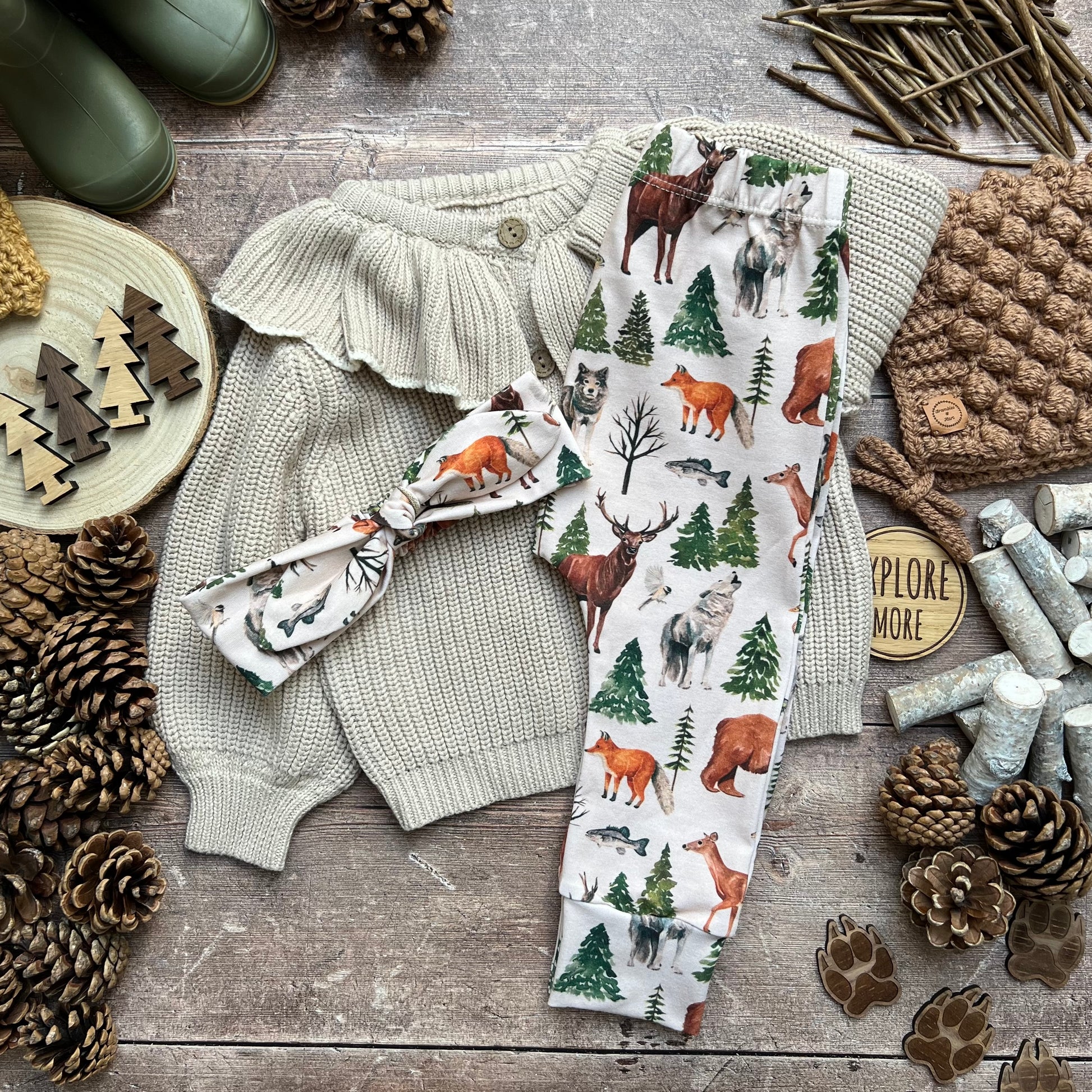 Handmade leggings, rompers, dresses and accessories - All items that I hand make are made from 95% organic cotton / 5% elastane, giving your mini explorers lots of room to explore and stretch. The only exceptions to this are our blankets which are 100% polyester making them super soft and cosy.
