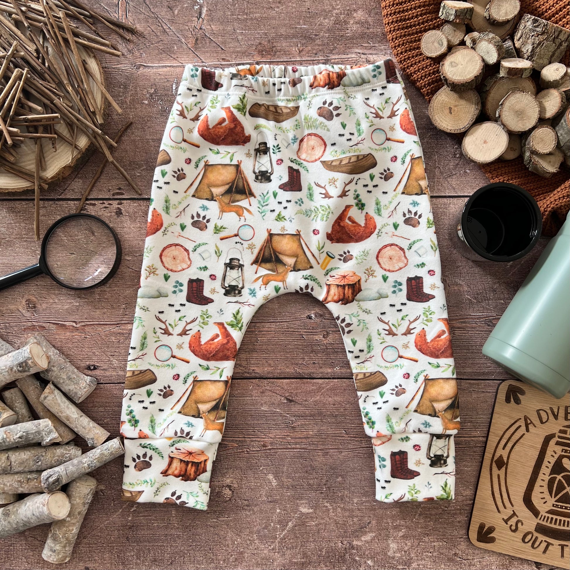 All harems feature a no-fold waistband and are cut for both cloth and disposable nappies, giving your little one the free to wriggle, crawl or run about. Sizing guides can be found here.