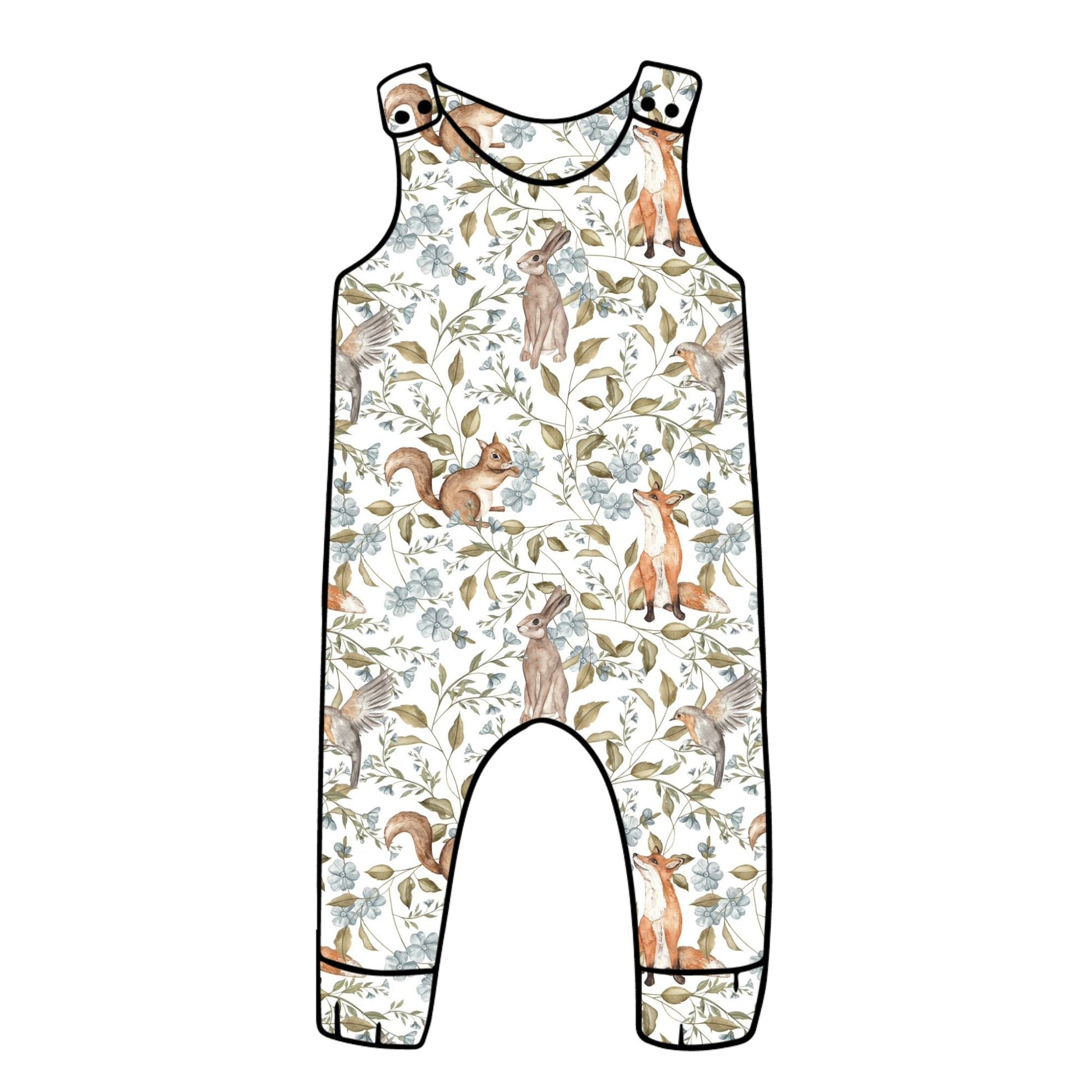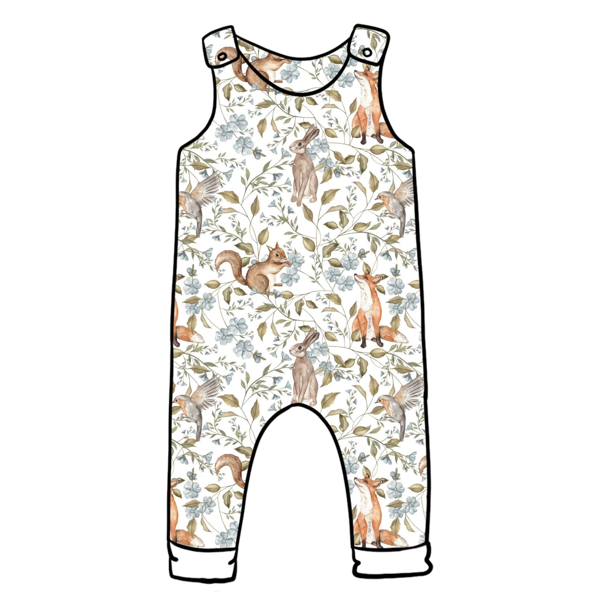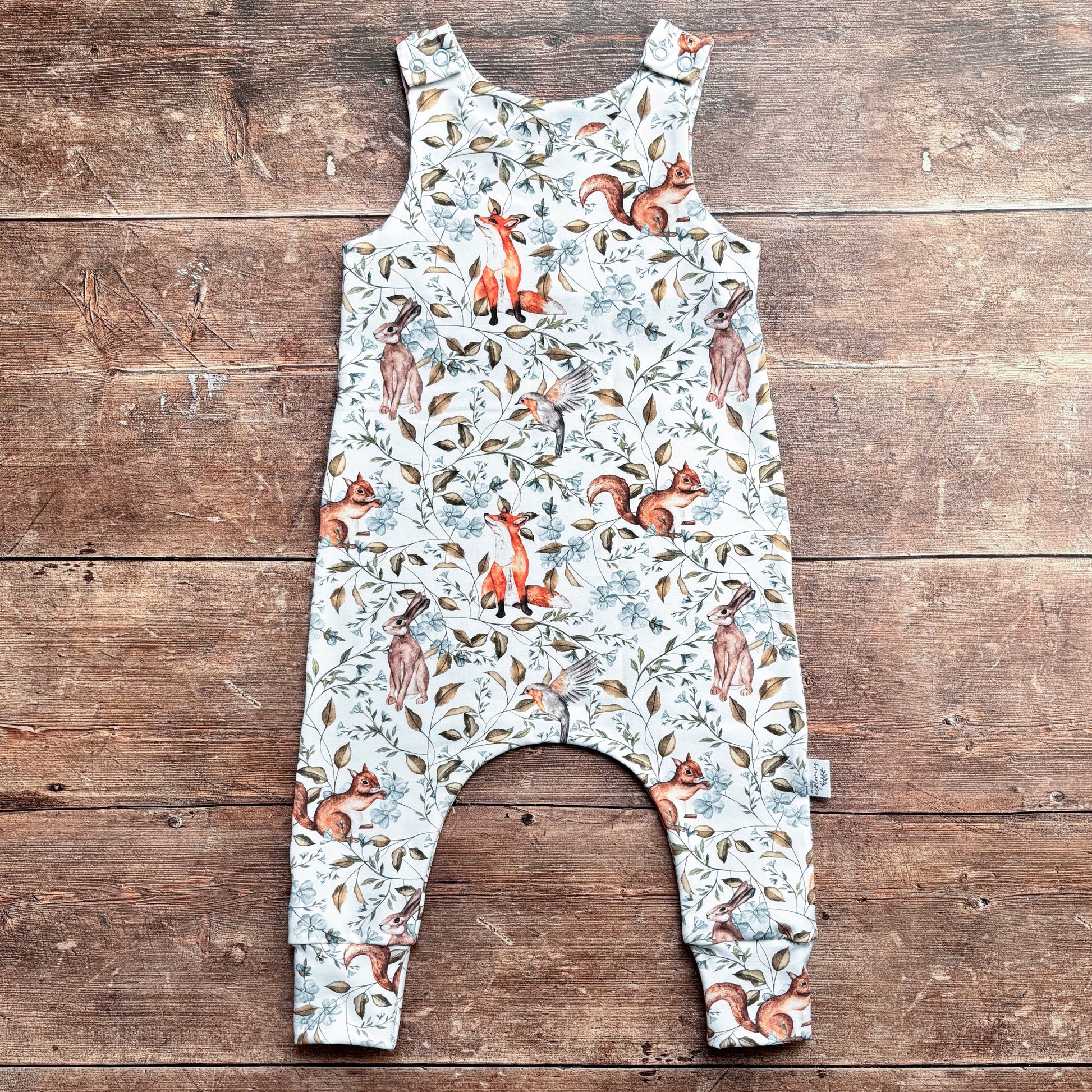Let your little one play, explore, and relax in style with our Woodland Companions print Baby & Children's Full Length Romper. Featuring a whimsical meadow print filled with woodland animals, wildflowers, hares, foxes, squirrels, and robins, it’s ideal for outdoor adventures, playful days out, or cosy moments at home.