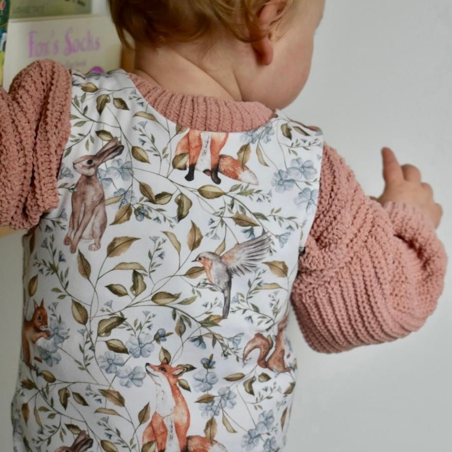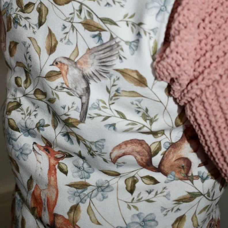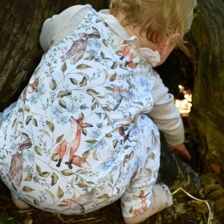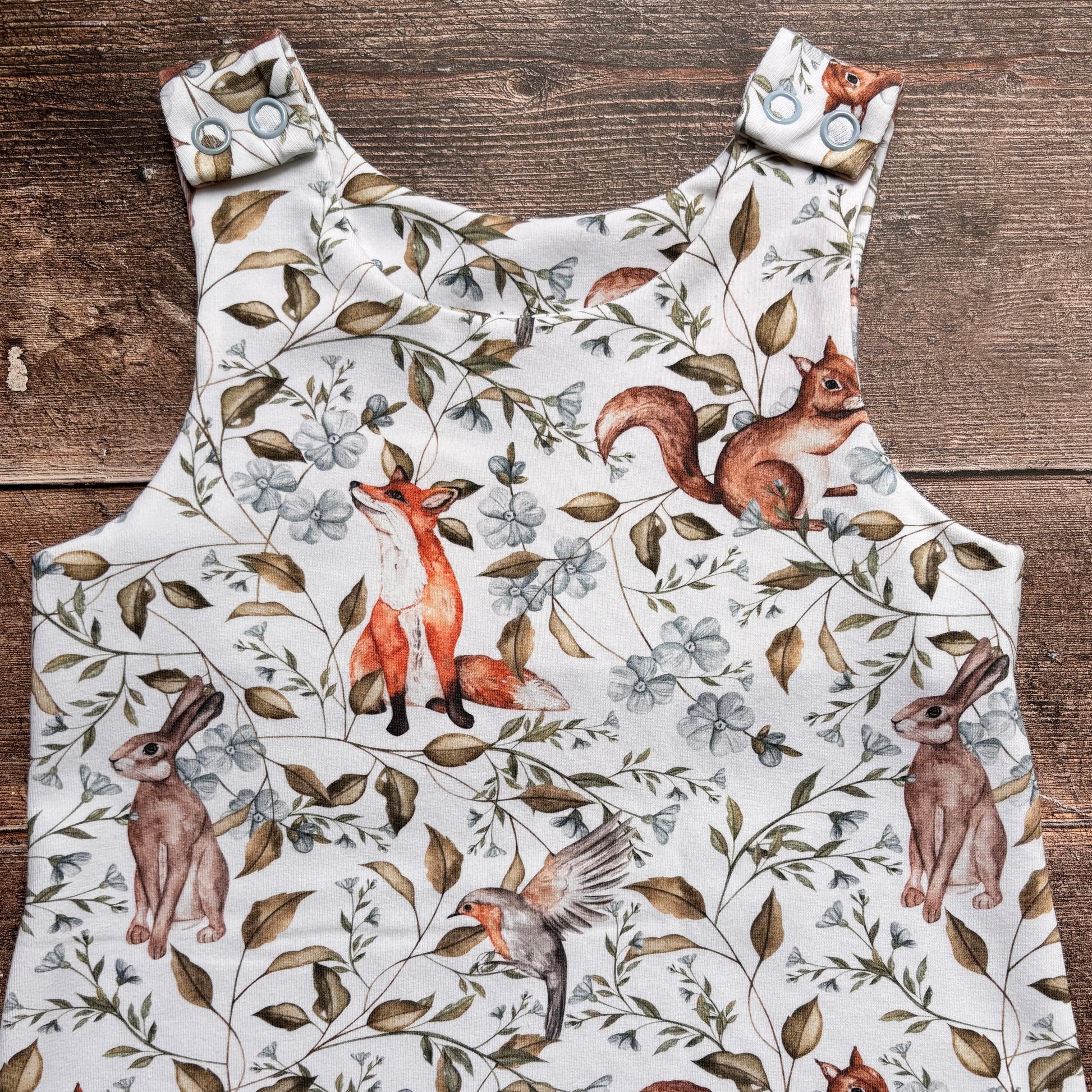 Let your little one play, explore, and relax in style with our Woodland Companions print Baby & Children's Full Length Romper. Featuring a whimsical meadow print filled with woodland animals, wildflowers, hares, foxes, squirrels, and robins, it’s ideal for outdoor adventures, playful days out, or cosy moments at home.