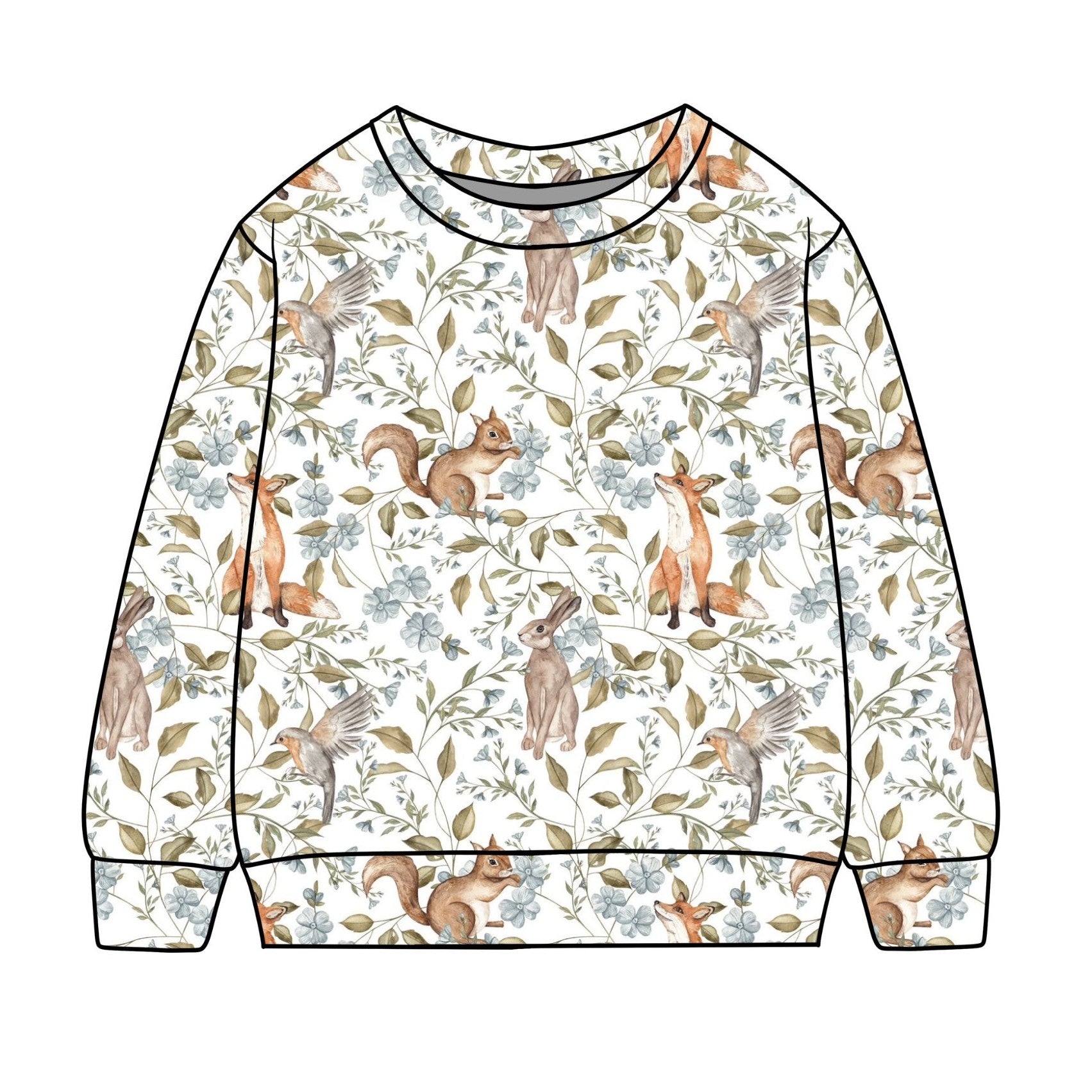 Made from soft, organic cotton French Terry, this warm and comfy layer features our Autumn Squashes print — a beautiful watercolour design featuring woodland animals, wildflowers, hares, foxes, squirrels, and robins, it’s ideal for outdoor adventures, playful days out, or cosy moments at home.